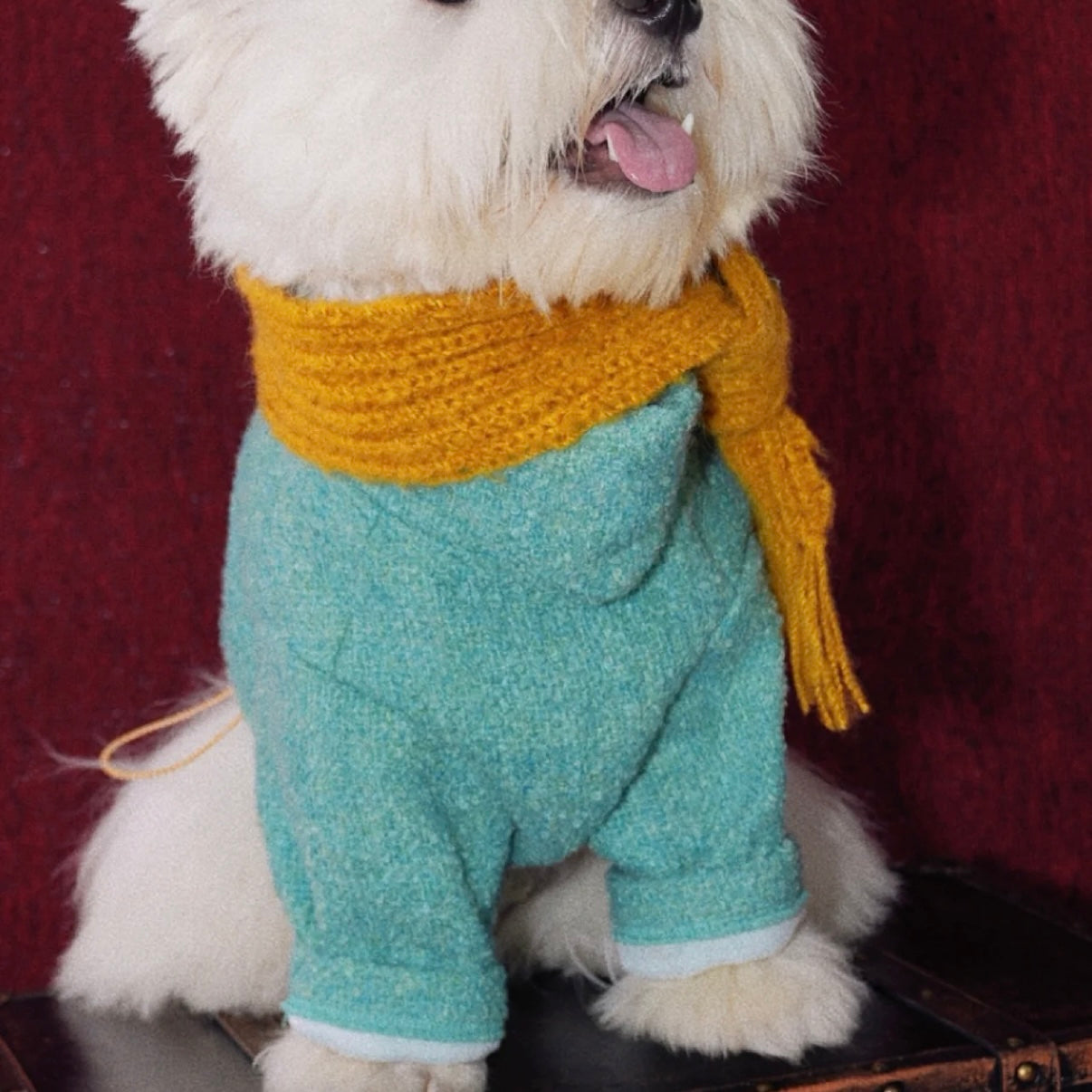 Premium Fabric: The fabric consists of 70% wool and 30% polyester. This imported blend delivers a premium texture and a firm, structured hand-feel. The thickened, non-stretch design offers both warmth and style, while the unique lake blue hue complements pets with both light and dark coats.